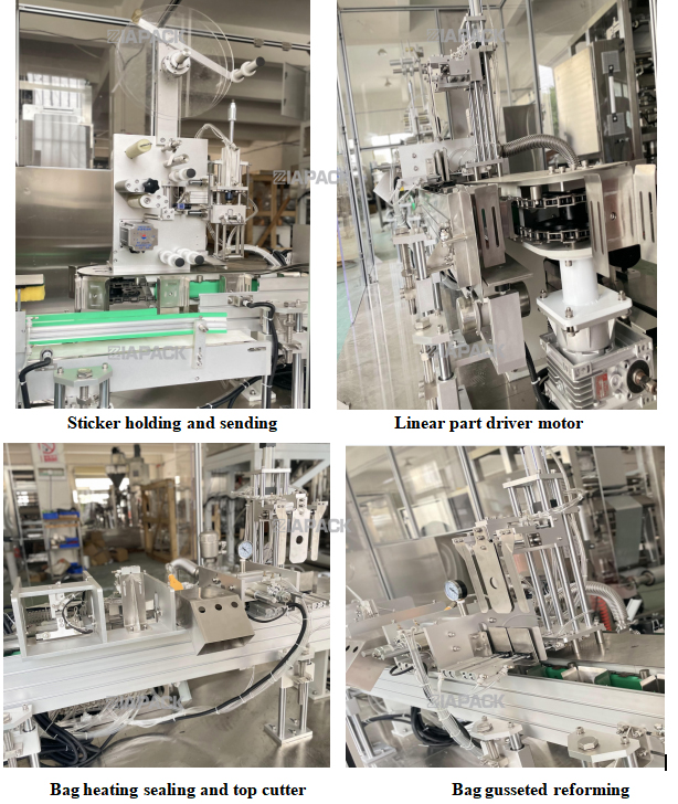 یہ مشین اوپر لیبلنگ کے ساتھ گسٹ بیگ بنانے کے لیے خصوصی ڈیزائن ہے .اس مشین پر پروڈکٹ کے ساتھ مکمل بیگ کے بعد .یہ مشین بیگ کو لے کر جائے گی، ایک بار بیگ کے منہ کی تہہ سے گزرے گی اور پھر لیبل کو چسپاں کرے گی۔ SUS304 .PLC اور ٹچ اسکرین سیمنز برانڈ کے ذریعہ اپنایا جاتا ہے .اور نیومیٹک پرزے SMC برانڈ کو اپناتے ہیں .مین الیکٹریکل پرزہ جات Omron اور Schneider برانڈ کو اپناتے ہیں .یہ مشین تیار شدہ بیگ ٹاپ لیبلنگ تک پہنچنے کے لیے خودکار پیکجنگ مشین کے ساتھ کام کر رہی ہے .یہ مشین خودکار طریقے سے فنکشن تک پہنچ سکتی ہے علیحدہ لیبل کے ,لیبل بھیجنے .لیبل پکڑنے والا اور لیبل دبانے .
