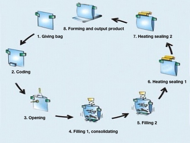 - تعارف: یہ یونٹ مشین مائع اور ٹھوس مرکب کی مصنوعات کو پلاسٹک کے تھیلے میں پیک کرنے کے لیے خصوصی ڈیزائن ہے۔ مشین میں خودکار بیگ بنانے، ٹھوس مصنوعات کا وزن، مائع مصنوعات کی پیمائش اور بھرنے کا کام ہوتا ہے۔ بیگ کے اندر ہوا کو ختم کرنے کے اختیاری کام کے ساتھ اس کے بعد بیگ کو سیل کرنا .مشین میں تاریخ کے پرنٹر کے لیے کلر ربن بھی ہوتا ہے تاکہ میعاد ختم ہونے کی تاریخ اور پیداوار کی تاریخ کی کوڈنگ کی جا سکے۔