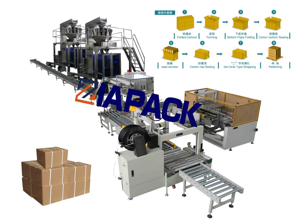 یہ اختتامی لائن پیکیجنگ پروڈکشن لائن بنانے کے لئے فلم پیکیجنگ مشین، کیس پیکر اور ریپنگ مشین کے ساتھ کام کرسکتا ہے.
