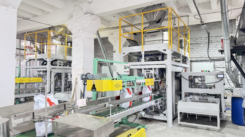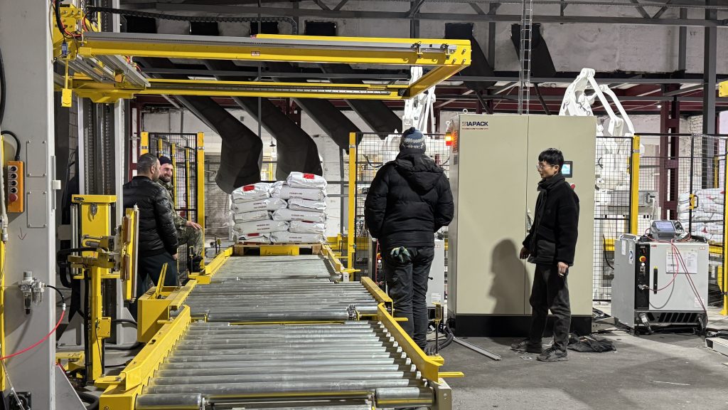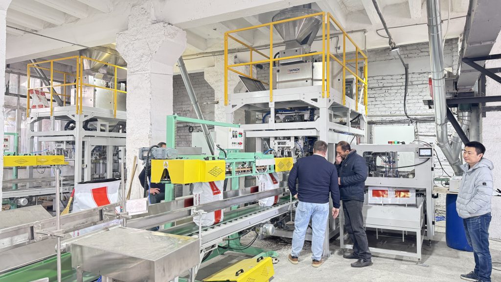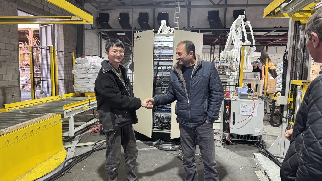 آپ یہاں ہیں: گھر » خبریں » ہمارے کلائنٹ کی فیکٹری میں دو یونٹ 25 کلوگرام پالتو جانوروں کے کھانے کی خودکار وزنی بیگنگ کنویئنگ اور پیلیٹائزنگ لائن چلنا شروع ہو جاتی ہے۔