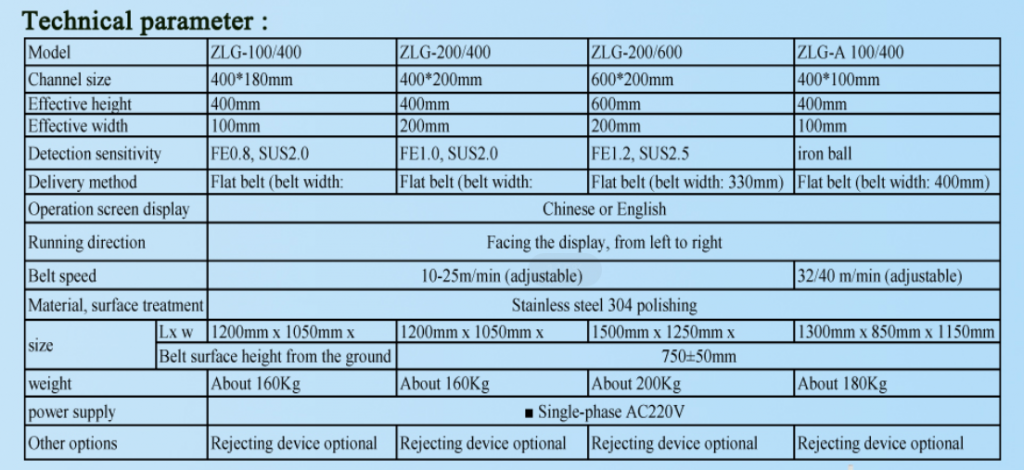 مثالی طور پر چاکلیٹ، آلو چپس، دودھ پاؤڈر ساسیج، نمکین مصنوعات وغیرہ وغیرہ جیسے ایلومینیم ورق پیکجوں میں فیرس اور سٹینلیس سٹیل کا پتہ لگانے کے لئے.